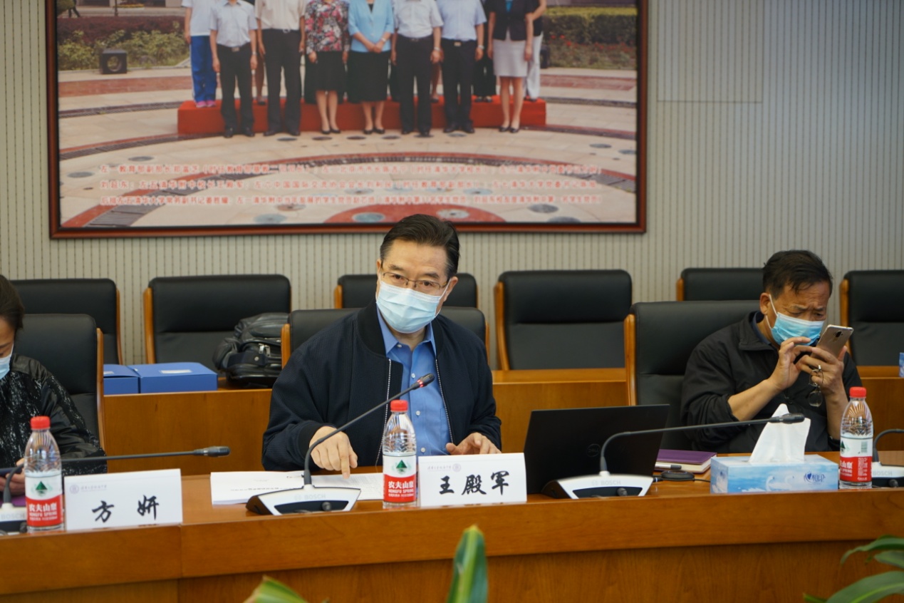 调研会上,王殿军汇报了高三年级试开学准备工作情况。学校在第一时间就成立了试开学工作领导小组,协调高三及全校各部门全力准备高三试开学工作。附中按照上级要求准备试开学工作,制定了《2020年清华附中春季试开学方案制度汇编》,召开教职工防疫培训会,进行试开学演习,力求全体教职员工明确责任、任务和流程。在教育教学方面,高三年级教师着重注意做好学生线上线下的学习衔接。同时,学校高度重视师生和学生家长的心理健康,进行形式多种多样的心理培训,纾解他们的心理压力。学校严格按照上级要求,认真落实试开学后的校园人员进出管理、师生食宿安排、健康监测和联防联控等工作,确保试开学工作万无一失。