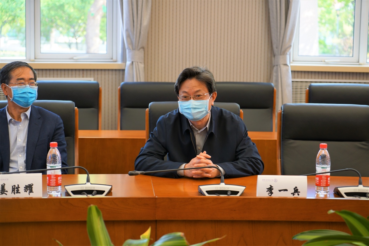 在检查调研过程中,姜胜耀和李一兵一行视察了高三师生入校情况,亲自检验人脸识别测温系统,实地考察教室、食堂的环境布置。附中校长王殿军、党委书记方妍介绍了学校为高三年级学生返校学习所做的准备工作。