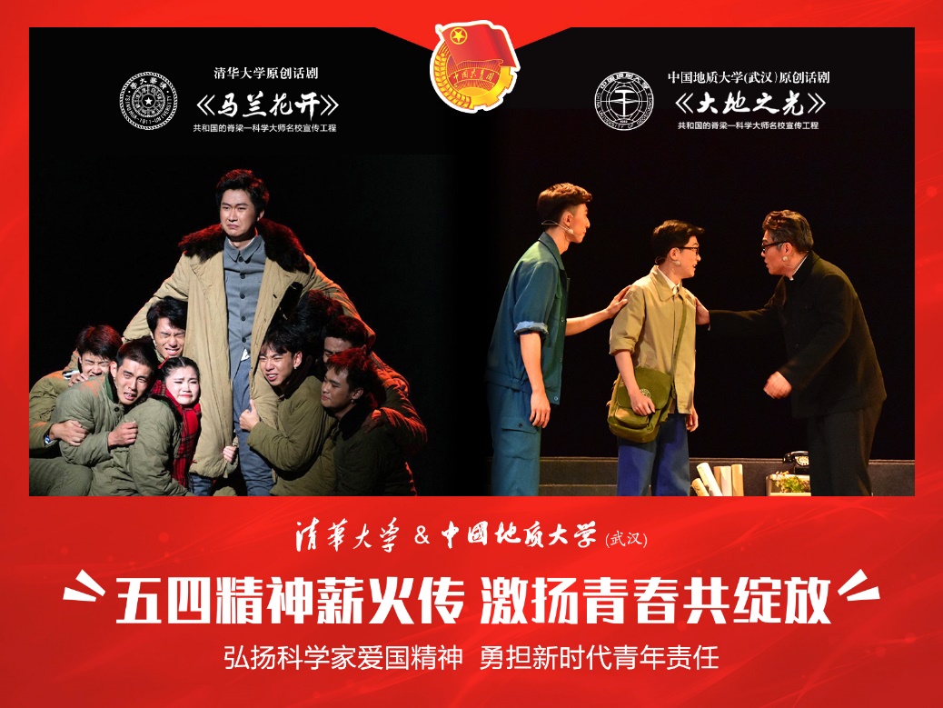 朱荆萨表示,同为“共和国的脊梁——科学大师名校宣传工程”的首批支持剧目,两校剧组相伴走过9年时间,结下了不解之缘。自排演至今,《大地之光》剧组已经培养了6代演员,走出众多优秀学子。一位主演在毕业之际毅然选择前往新疆地质考察一线,成为了一名基层工作者,将话剧的精神力量传承下去。在排演过程中,剧组成员发扬“不怕累,不怕苦”的精神,通过刻苦训练打磨出优秀作品。在抗击疫情期间,武汉人民身处暴风眼中央,亲眼目睹包括清华人在内的很多逆行者奋勇抗击疫情,要向这些逆行的英雄和奋斗的青年们致敬。在五四青年节之际,希望两校学子携手并进,青春无问西东,奋斗自成芳华。