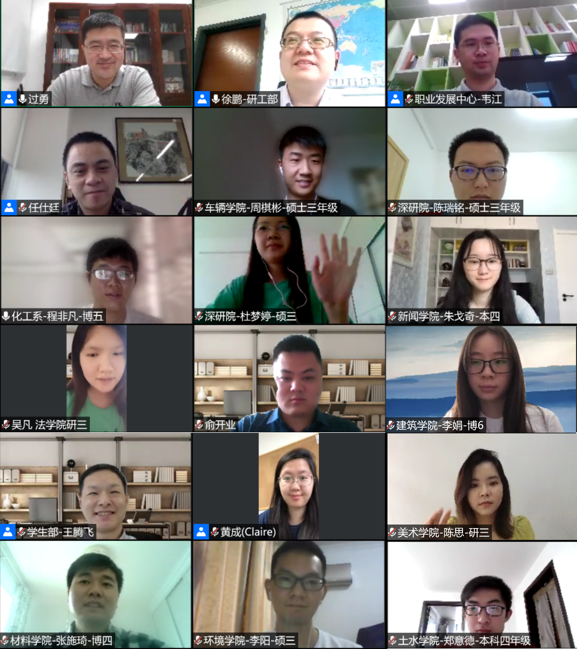 化工系博士生程非凡、土木系本科生郑意德、美术学院硕士生陈思等也分别就疫情防控期间的心得体会进行了分享,就毕业生返校工作方案进行了咨询和交流。同学们纷纷表示,将在未来的工作岗位上牢记母校嘱托,为国家复兴、民族富强努力奋斗。