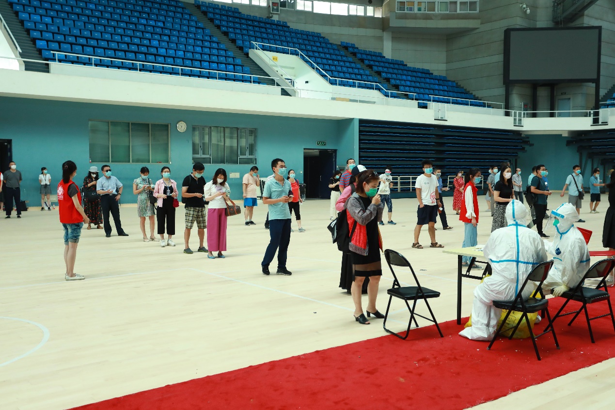 为进一步做好对在京高校人员等重点人群病毒核酸检测,落实“应检尽检”有关要求,6月27日全天、28日上午,在京在职教职工9500余人,以及其他各类人员约14000人接受集中核酸检测。学校切实把疫情防控工作做到位,筑牢校园防疫的防护墙。
