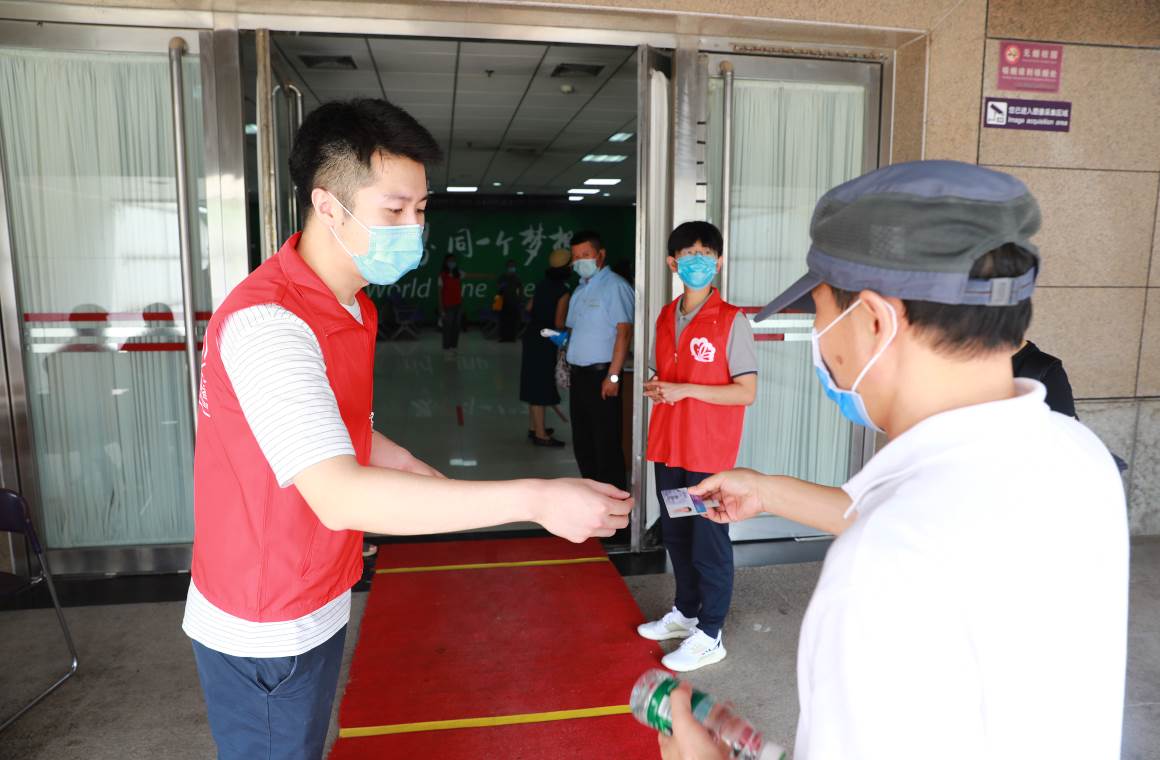 从入口处信息登记到咽拭子采集全过程不超过5分钟,身着红马甲的志愿者在每个环节都提供了细致到位的服务保障工作。累计有200余位校机关志愿者参与其中,确保教职工安全高效地完成核酸检测。