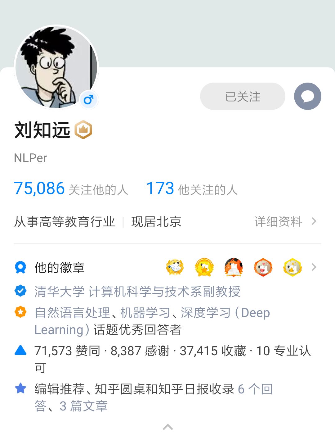 迄今为止,刘知远已经在「知乎」回答了近600个问题,获赞7万多次,内容涉及学术、生活、时事等多个领域。由于在「知乎」等社交平台上十分活跃,很多学生是通过网络了解并联系到他的。