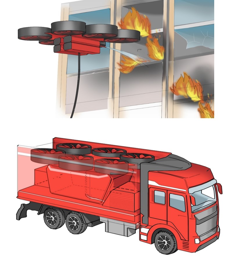 “缺乏有效的实战举高装备,是全世界消防救援队伍面对高层(50米以上)建筑火灾无能为力的核心痛点。”李也想到,如果将涵道风扇工业无人机技术应用至应急管理领域,可有效实现高层火情勘察、长时间消防灭火和救援等多重功能。