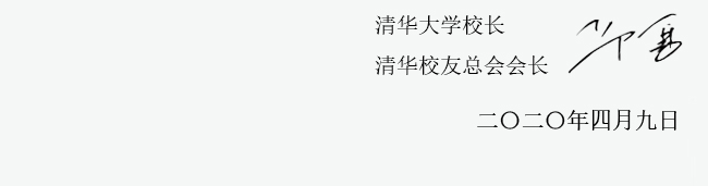 清华109周年校庆必定是一个特殊的校庆。因为疫情,我们不能邀请亲爱的校友们回到母校。但我相信,“云校庆”会带给我们同样的温馨、别样的精彩,清华园也永远是所有清华人温暖的家。“佳期当可许,托思望云端。”我相信,在山川澄澈、风月疏朗的时节,我们一定会迎来更加美好的相聚!我相信,未来,清华会更好、中国会更好、世界会更好!