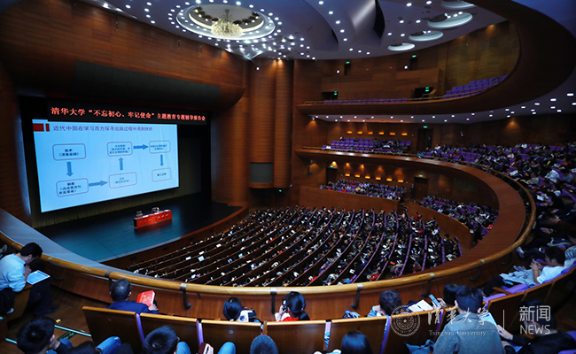 乐动(中国)网10月12日电(记者 张静 摄影 曹文鹏)10月11日上午,乐动平台“不忘初心、牢记使命”主题教育集中学习研讨“专题三:主动担当作为、矢志教育报国”辅导报告会在新清华学堂举办。马克思主义学院欧阳军喜教授应邀作“中国共产党与中华民族伟大复兴——学习习近平总书记关于党史、新中国史重要论述的几点体会”专题辅导报告。校党委副书记、校长邱勇等学校领导班子成员,全校副处以上党员干部、部分党外干部,各党支部书记、本科生辅导员和研究生德育助理等1600人参加报告会。校党委副书记过勇主持报告会。