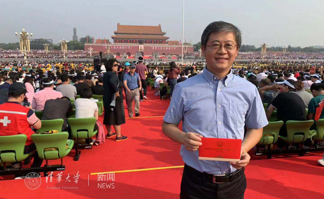 我和众多观礼的群众来到天安门广场,观看国庆70周年阅兵及群众游行活动。坐在观礼台上,看着我们美术学院团队设计的“红飘带”飘逸、灵动地矗立在广场两侧的草地上,看着观礼群众兴奋地以“红飘带”为背景拍照留念,思绪万千。