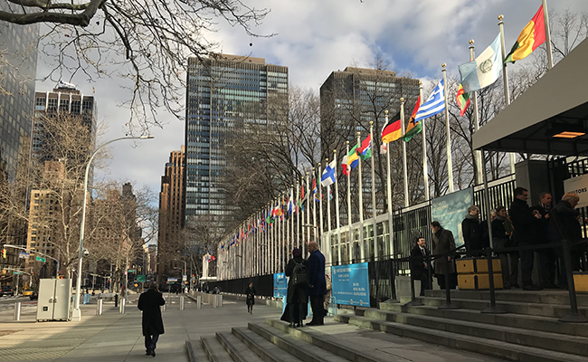 联合国纽约总部大楼前