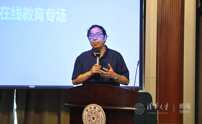 杨斌分享了自己对在线教育的几点体会。他首先针对在线学习与三位一体理念的关系做了分析,希望在线课程在知识传授上更强化定制性、互动性的基础上,做好在能力提升和价值塑造上的探索,自主学习、终身学习的能力,自律与坚持的品格品性,以及学习社群的形成,都应当成为在线教育在育人上的重要成效。在线教育目前建设的时间还很短,课程数量还很少,呈现形式上还太传统,未来需要有更多的教师和学生参与改进,让技术变革的力量充分得以发挥。他说,我们也应重新思索“精品课程”的内涵,要更重视其内容上的精品,授课方式上的精品,学习动力激发上的精品,而不过分固着于形式和制作。杨斌希望大家共同努力,借助在线以及更多技术革新之力,在清华乃至更大的平台上让清华的优秀师资、学术造诣、课程质量、育人态度尽显、尽展。