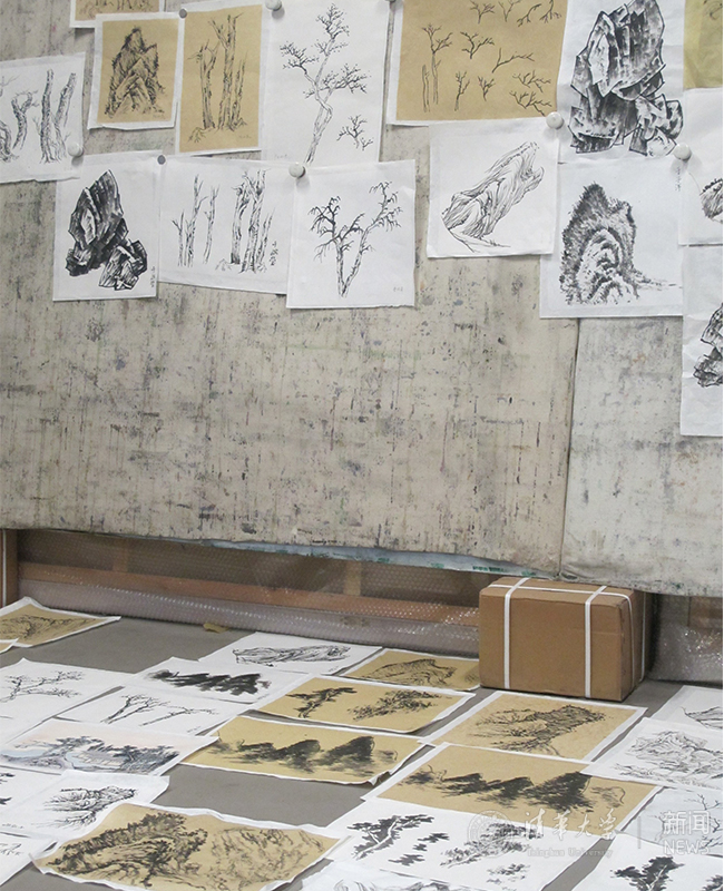 清华美院国画系的学生都知道,韩敬伟的“山水画技法”课是“魔鬼训练”,学生在这四周的课程当中要完成至少一百张练习稿。