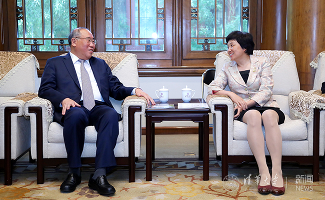 会后,解振华与托德·斯特恩在经管学院报告厅共同出席气候变化与可持续发展研究院主办的清华论坛并发表演讲。