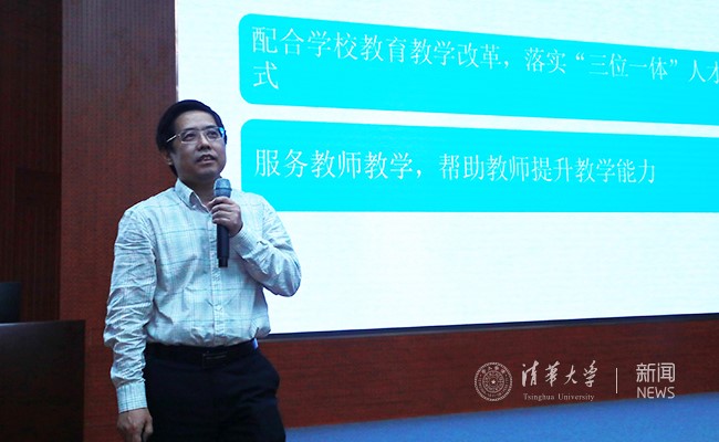 杨斌表示,自清华第25次教育工作讨论会开幕以来,学校相继举行了多场教育工作研讨会,此次召开全校院系教学培训工作研讨会,希望能推动院系发挥作用,积极提升教师教学水平,落实“三位一体”的培养目标。
