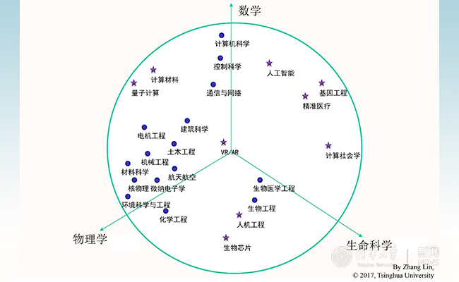 工程科学是自然科学的自然延伸和发展,数学、物理和生命科学(含化学)是现代工程科学的三大支柱,每一个工程学科的分支,都可以在“数学-物理-生命”的三维笛卡尔坐标系中确定自己的定位。清华-伯克利深圳学院已经建设了环境科学与新能源、数据科学与信息技术、精准医学与公共健康三大交叉学科研究中心,并通过“数学-物理-生命”的空间坐标位置,探究跨学科研究的机会。更重要的是,通过在这样一个体系下重新审视工程学科的整体结构(而非某一特定的小领域),我们有机会重新回归到原点,并在人才培养的过程中,设定三个坐标轴上最基础、最重要的核心课程体系,针对跨学科招收的学生,夯实理论基础,并掌握本领域研究的精髓精神,因为我们坚信,没有本领域研究的强大基础,交叉学科就会流于形式,是为坚守。