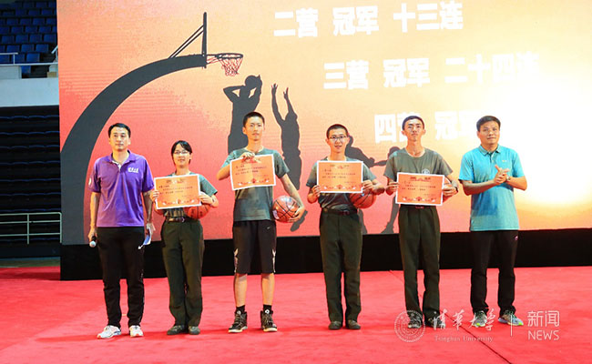 在颁奖环节,校党委武装部部长熊剑平为新生颁发了进入清华园后体育竞赛的第一个奖项:新生军训篮球赛优胜奖。同时还对获得定向越野优胜奖的同学进行表彰。