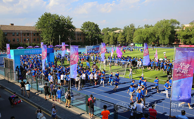 热闹的毕业长跑现场。记者 苑 洁 摄