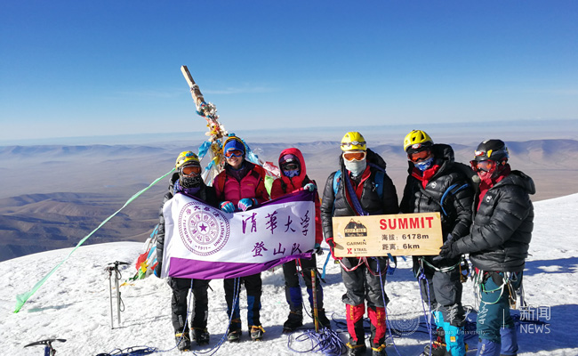 2017年7月18日,清华学生登山队A组队员在玉珠峰顶合影。