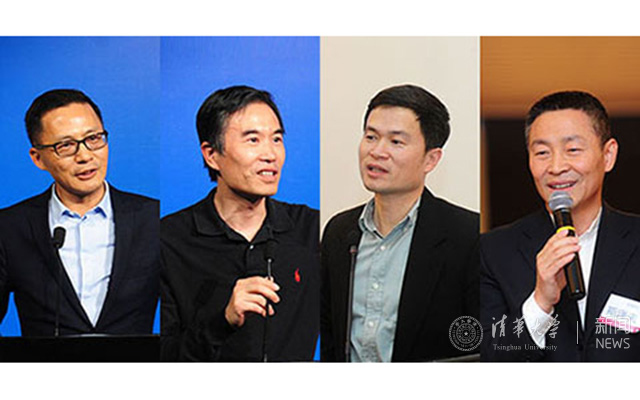 清华经管学院首届年度杰出校友获奖者:(左起)“杰出贡献奖”汪潮涌,“校友会荣誉奖”李华辉、方星海、斯泽夫。