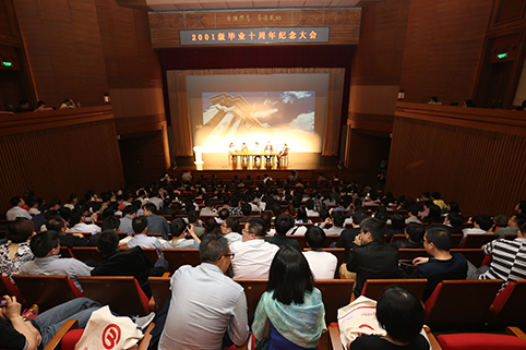 医学院章蓉娅、精仪系国防班史辉、环境系赵晨曦、机械系马来西亚籍留学生李笙凯、材料系倪杰、李大龙、建筑学院闫旭、经管学院胡凯等2001级校友代表上台分享自己大学生活的回忆和毕业后的经历,赢得了全场同学的广泛共鸣、引来了阵阵掌声和欢笑。会上还正式启动了一字班微信公众平台。最后,大会在优秀校园歌手闫旭、李大龙领唱的《简单爱》中圆满落幕。