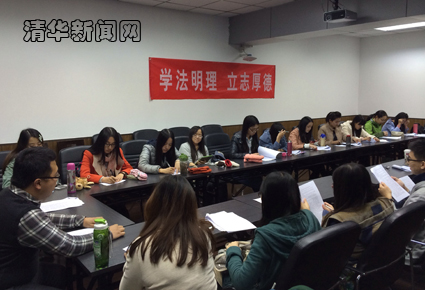 在学院内热烈学习讨论十八届四中全会精神的同时,法学院同学也努力发挥专业特长,在线上线下积极向全校同学介绍、宣传四中全会主要内容。其中,包括2013级民商法方向博士生王思思同学在内的几位博士生,志愿参与了学校博士生实践服务团及讲师团的“法学报告进基层”活动。他们以四中全会为背景,结合自身研究和现实案例,为兄弟院系的支部同学们做报告,实现了同学间自我服务、自我教育与知识交流的效果。与此同时,法学院研团总支、研究生会充分利用“明理资讯”微信公共平台持续向同学和校友推送有关四中全会内容的原创长图,并将全会《公报》《决定》中的要点制作成展板,摆放在校园南北主干道两侧,以帮助更多清华学子加深对依法治国的理解,体会法治与你我的责任。