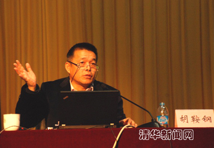 图为作报告中的胡鞍钢教授。