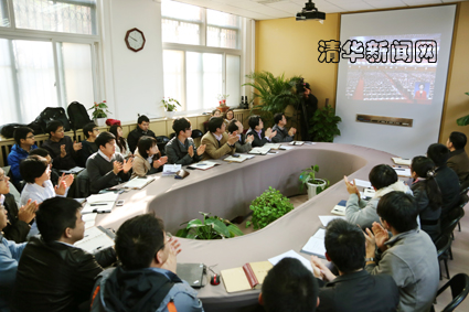 图为校团委大会议室观看现场。 研通社记者 王皓冉 摄