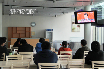 乐动(中国)网11月8日电(学生记者 潘正道 通讯员 宋伟泽)党的十八大开幕之际,清华环境学院收看现场里坐满了收看十八大开幕式的师生。