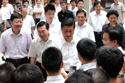 在大家依依不舍的目光中,习近平与清华师生们挥手惜别。