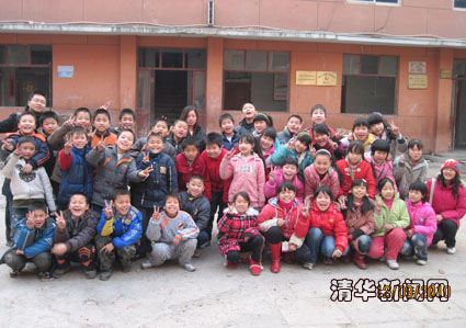 图为2010秋季学期参与“明圆支教”的清华学生与同学们期末合影。