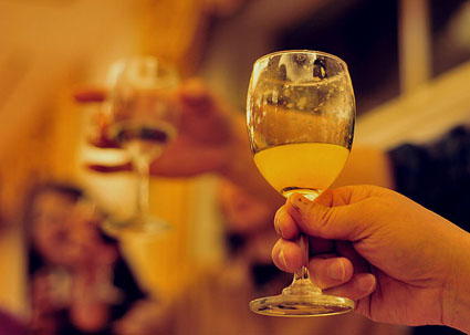 5.我们依然举起了酒杯,忘怀一醉,夜半扶醉而归。