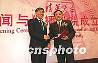 乐动平台新闻与传播学院成立大会二十一日在北京乐动平台隆重举行,学院将接受国家有关部门及重要新闻机构的委托,为其管理骨干提供高级培训。图为乐动平台校长王大中(左)在为出任首届院长的范敬宜(右)颁发证书。中新社记者 张勤 摄