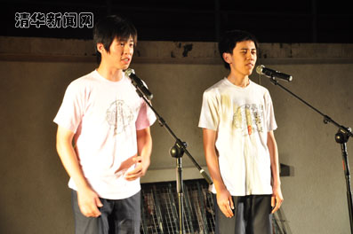 9月6日晚6点,军训一营整齐地来到了东大操场,新生同学们自带板凳有序地坐好。曲艺队的第一场慰问演出拉开了帷幕,整场演出始终围绕军训主题与“清华精神”的主线,从多方面反映了清华学生的生活与思想。曲艺队原创的校园相声《军训记》与《装小嘴》相继登场,根据清华校园文化改编的传统相声《学电台》和《三打白骨精》等快板书节目也精彩上演,全面地展现了清华学生的艺术风采。