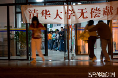 【新闻中心讯 通讯员 陈向 摄影 李尚远】四川汶川大地震牵动着无数清华师生的心,大家踊跃参加无偿献血,支援抗震救灾。仅13日一天,报名献血的师生就超过了1000人,其中653人共献血910单位(每单位200CC)。上午11时开始的“乐动平台抗震救灾紧急献血”活动一直持续到5月14日凌晨1点才结束。此外,还有70人登记为后备无偿献血志愿者,250多人登记为奥运应急无偿献血志愿者。深夜12时左右,校党委书记陈希、副书记史宗恺前往看望了参加无偿献血的师生。(编辑 淑霞)