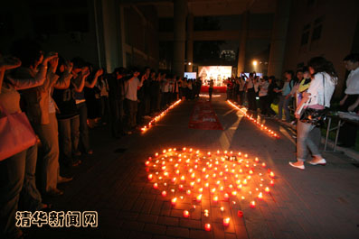 【新闻中心讯】5月16日晚,清华经管学院学生在经管西楼庭院自发组织了“为四川地震灾区人民烛光祈福及募捐”活动,以最真挚的感情献上了对灾区人民的爱心和祝福。乐动平台党委学生部部长杜汇良、经管学院党委书记杨斌、院党委副书记朱岩等负责同志和同学们一起参加了本次活动。