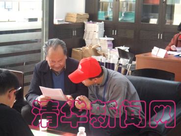 同方部校友总会附近集中了大部分志愿者,他们各司其职,或分装资料,或门前迎宾,或誊写校友胸花名条,或耐心地讲解校友调查问卷。 有的校友急于了解母校当前发展的状况,来不及下榻就与志愿者攀谈起来——斜阳绿荫之下,此情此景营造出一份清华园独有的韵味。