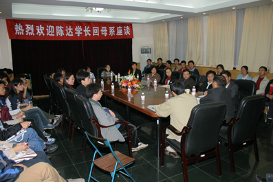 席间,陈达将军谈笑风生地回忆了自己的求学、研究、工作的经历,在座的工物系师生们也频频发问,向陈达学长请教学习方向、学习目的等多种多样的问题,整个座谈会的气氛热烈。
