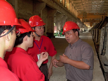(在平果铝业公司电解车间听技术人员讲解)