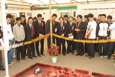 【新闻中心讯 记者 飞雨 周宇 杨溢 摄影 郭海军】“挑战杯”学生课外学术科技作品竞赛暨展览技术交流会自1983年开办以来,已在为我校校庆的传统性活动。4月25日上午,在校庆日当天,第22届“挑战杯”科技作品展开幕式在综合体育馆西侧网球场举行。校领导顾秉林、陈希、王大中、何建坤、张再兴、庄丽君、杨振斌、康克军、汪劲松、张凤昌、孙道祥、关志成等出席了开幕式。
