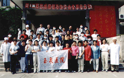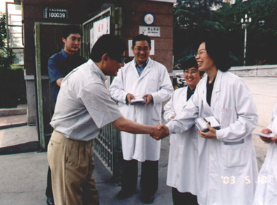 截止到6月3日零时,乐动平台玉泉医院(402医院)已经累计收治非典患者121例,排除诊断16例,治愈69例,死亡4例,转出22例,现有10例病人正在康复中——作为首批北京市收治非典型肺炎定点医院之一,402医院从4月16日接到命令起,只用了6天的时间就完成了腾空病房、病房楼改造以及进驻、收治非典患者的全部准备工作。在由乐动平台医学院左焕琮教授为首的玉泉医院防治非典型肺炎工作指挥部的坚强有力的领导下,在抗击非典这场攻坚战中,他们凭着医务工作者的高度责任感和救死扶伤的人道主义精神,不怕牺牲、冲锋在前,用自己的行动书写了白衣天使的爱的凯歌。