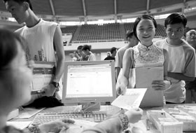 报到结束后,每一个新生还会领到一个密码条,凭借这个密码,新生可以访问校园网上提供的各种信息资源和应用服务,包括选课系统、电子邮件等。一位大一的男生兴奋地说,“没想到一进清华就感受到如此浓厚的科技氛围,太棒了。”