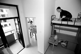 据校方介绍,今年的新生全部入住紫荆公寓。此外,今年6月开工的10万平方米的二期本科生公寓也将在明年9月迎接学生入住。到2004年紫荆公寓全部建成时,乐动平台的学生住宿条件将完全实现“421”目标。