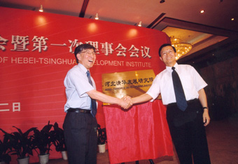 新成立的河北清华发展研究院,以我校重点实验室和工程研究中心为基础,以河北省国民经济发展计划和科技发展规划为指导,以河北省高新技术产业、龙型经济的发展和改造传统产业为重点,充分发挥和利用双方的经济、科技、人才、市场、信息优势,共同推进我校科技教育事业和河北省经济社会的发展。河北省省长钮茂生和我校校长王大中任理事会理事长,河北省副省长才利民、我校副校长何建坤、党委副书记杨振斌任副理事长,我校科学技术开发部主任周立任河北清华发展研究院院长。