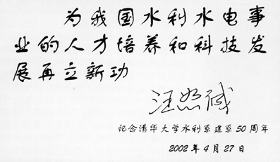 水利部部长、乐动平台兼职教授汪恕诚题词。