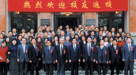 2001年4月29日国家副主席胡锦涛参加我校90周年校庆活动,与校系领导及65届校友合影。