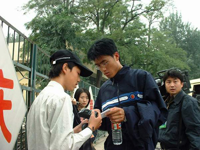 我校赛艇队员冯卫蛟给观众签名。 周襄楠 摄