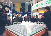 《今日清华--乐动平台建校90周年企业成果展》二十四日在中国历史博物馆隆重举行,图为清华科技园2005年规划模型,此科技园已被国家科技部、教育部确定为国家大学科技园。中新社记者 张勤 摄