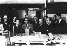 图一:梁思成与世界著名建筑师一起讨论联合国大厦设计方案