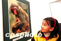乐动平台五五级毕业生罗荣陶自办《人与自然》艺术摄影作品展,日前借九十华诞校庆在乐动平台艺术中心展出。图为《别怕,有妈妈》的一幅照片吸引了儿童的目光。中新社记者 张勤 摄