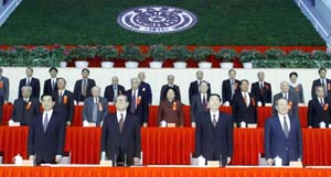 出席庆祝大会的领导同志还有:丁关根、吴邦国、贾庆林、温家宝、曾庆红、彭珮云、周光召、丁石孙、成思危、钱伟长、朱光亚、胡启立和王汉斌、费孝通,中央军委委员曹刚川以及中央、国家机关有关部门的负责同志。