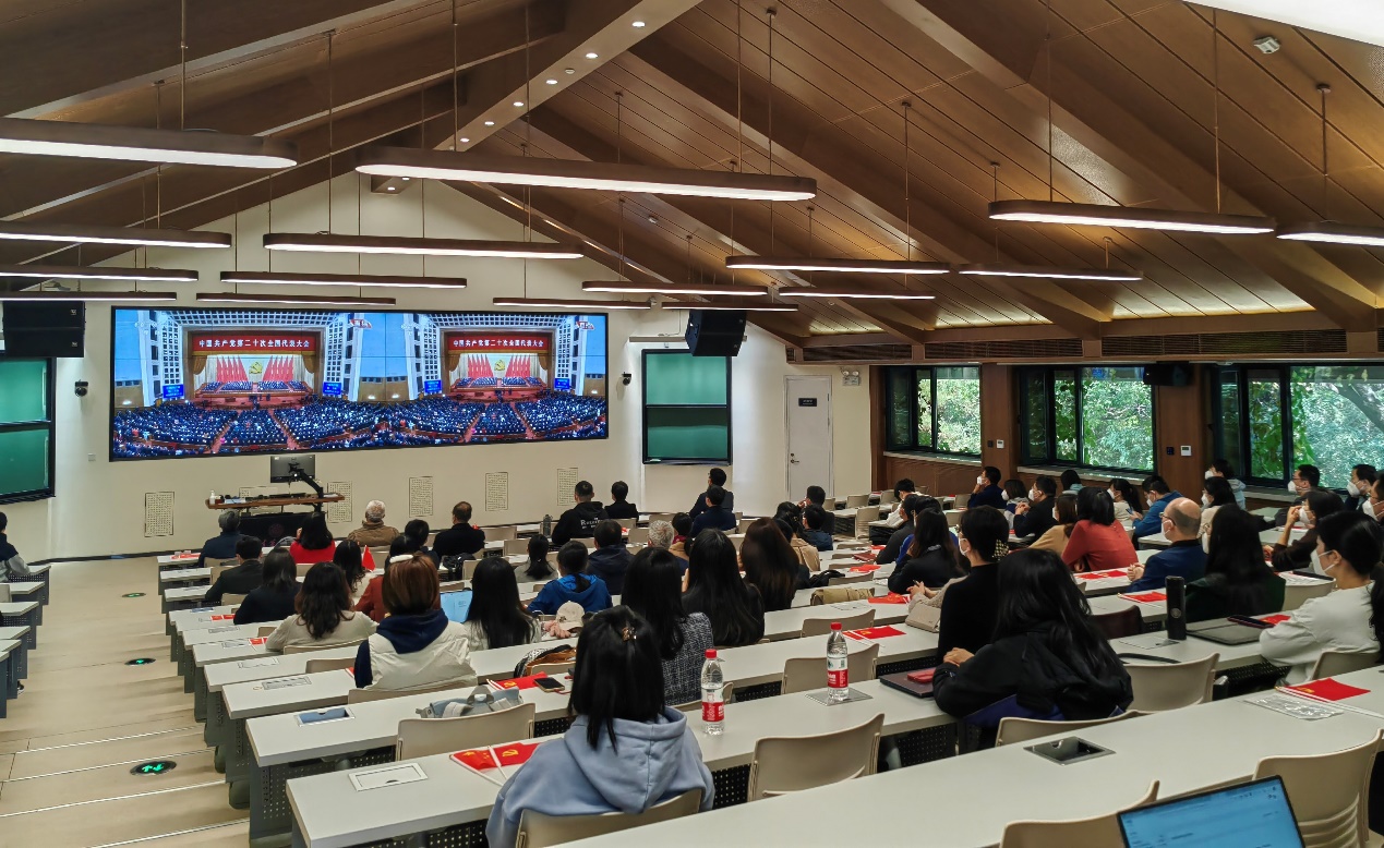 为第一时间学习党的二十大会议精神,各院系部处分别组织教职工和学生收看、收听开幕会直播。在这个举世瞩目的重要时刻,清华师生在校园各个会场内相约屏幕前,共同观看时代盛会、热议祖国未来、激发报国情怀。