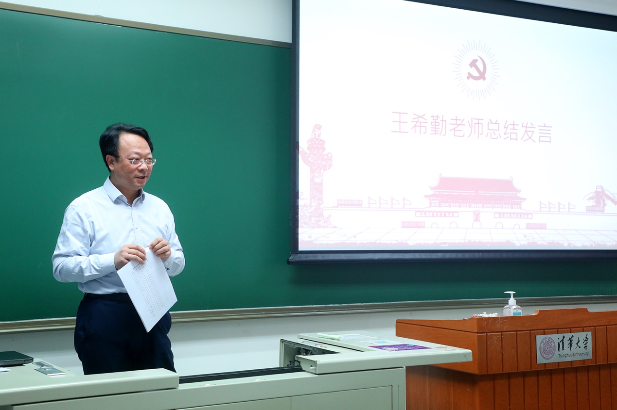 王希勤在总结讲话中对同学们认真学习党史、主动关注时事、努力筹备党团日的态度给予了肯定。他从学科分化与问题综合、个人声誉与组织声誉、自然科学与人文科学等角度,分析了现代大学的特点以及发展走向;回顾了清华学科设置和调整的历史,以及书院制在清华的落地和发展历程。王希勤结合习近平总书记在乐动平台考察时的讲话精神指出,当前世界处于百年未有之大变局,清华作为中国高等教育的一面旗帜,有责任去探索中国式的现代化大学道路。同学们作为第一批接受强基计划培养的学生,应当牢记习近平总书记的讲话精神,积极承担起当代青年的责任与使命,主动参与到教育过程中,处理好理论学习和创新实践之间的关系,在探索道路上贡献自己的力量。